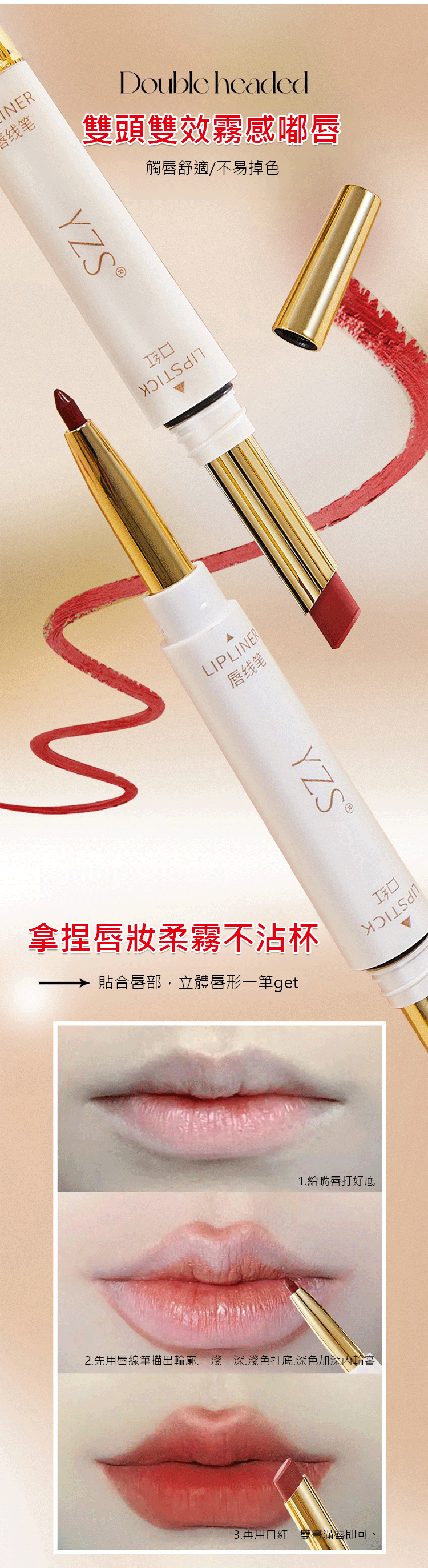 不沾杯雙頭口紅唇線筆