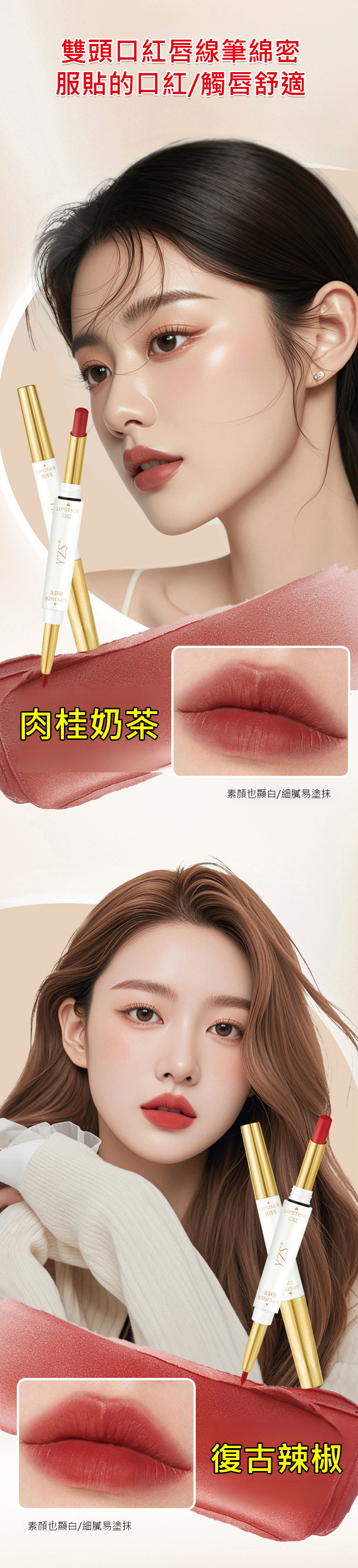 復古辣椒(YZS柔霧不沾杯雙頭口紅唇線筆)