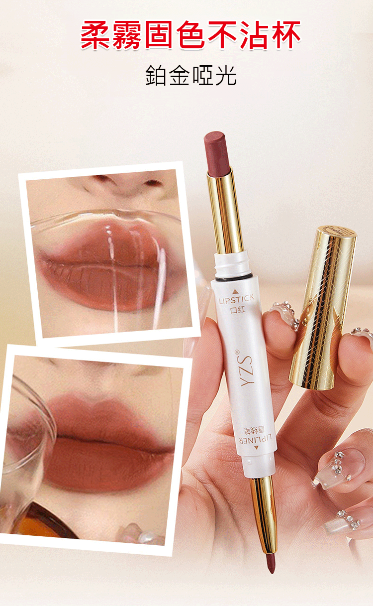 裸杏甜茶(YZS柔霧不沾杯雙頭口紅唇線筆)