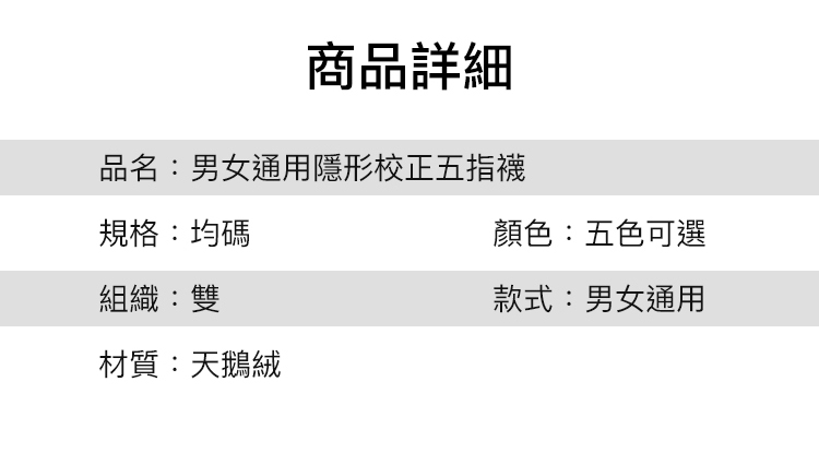 男女通用隱形校正五指襪