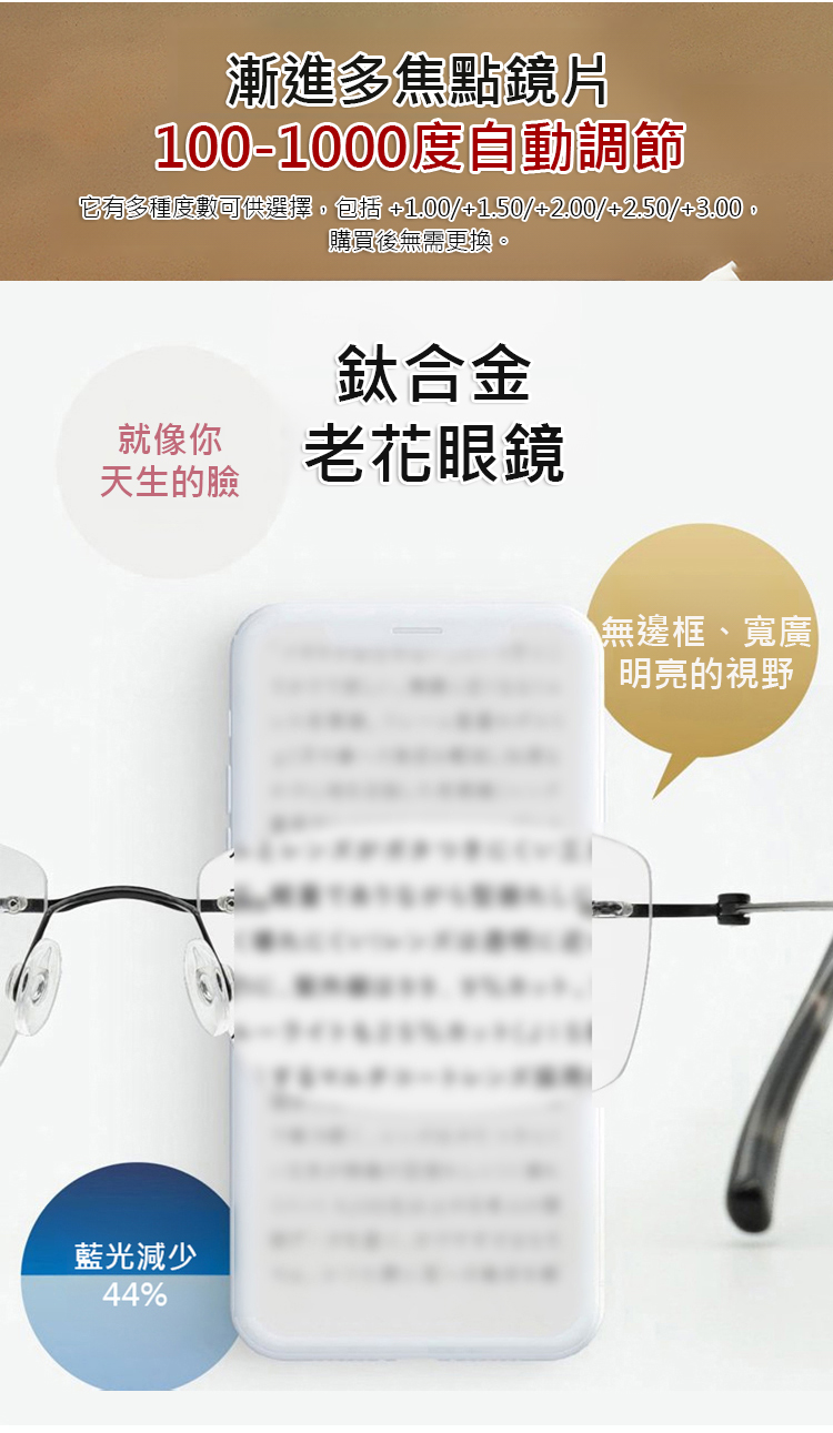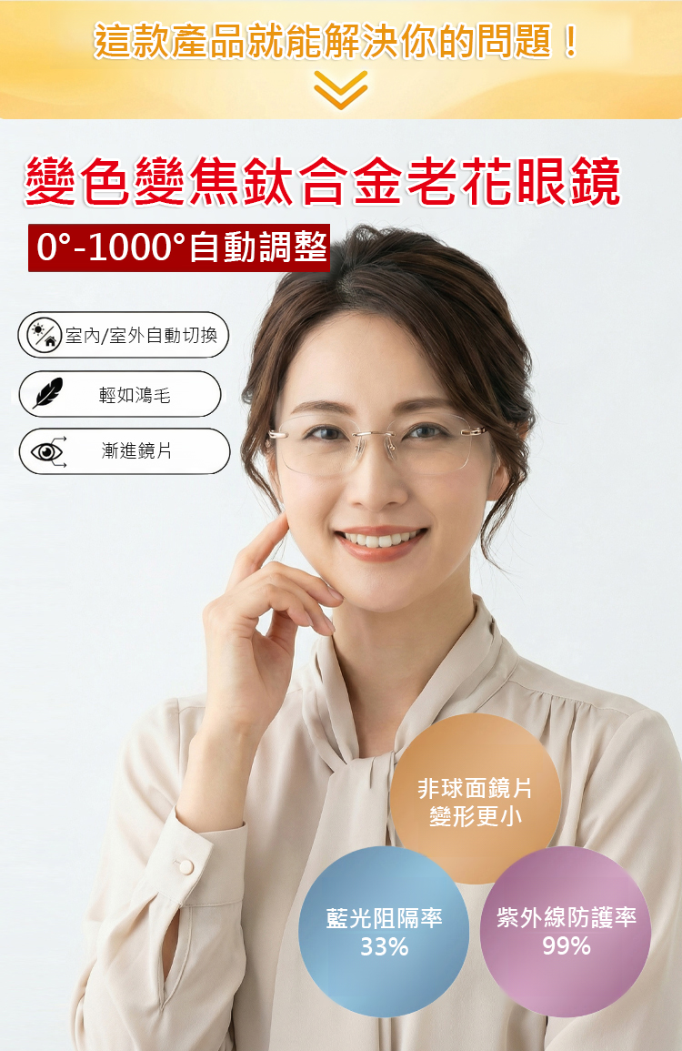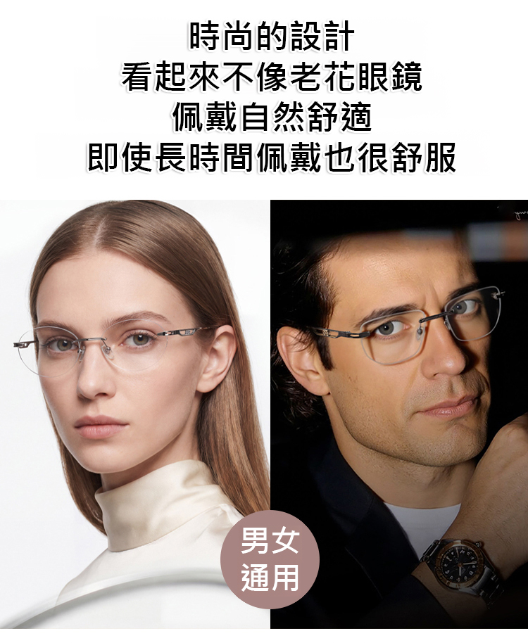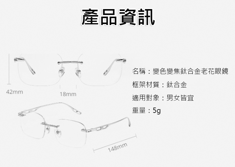 新款變色變焦鈦合金老花眼鏡