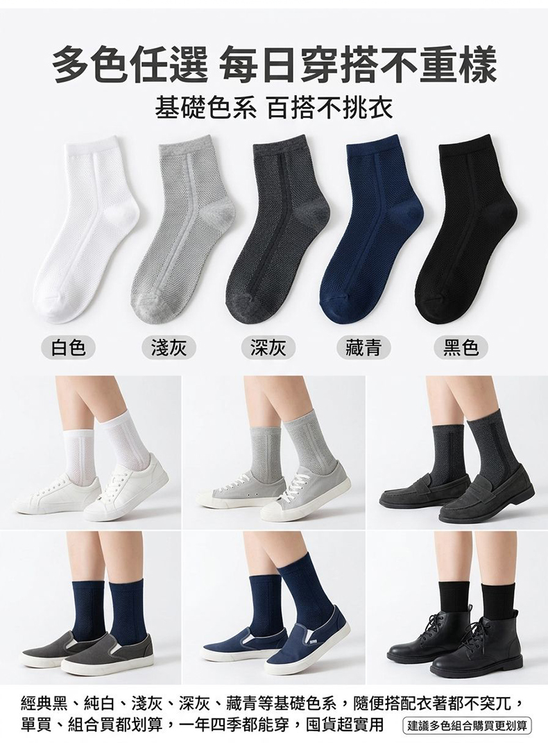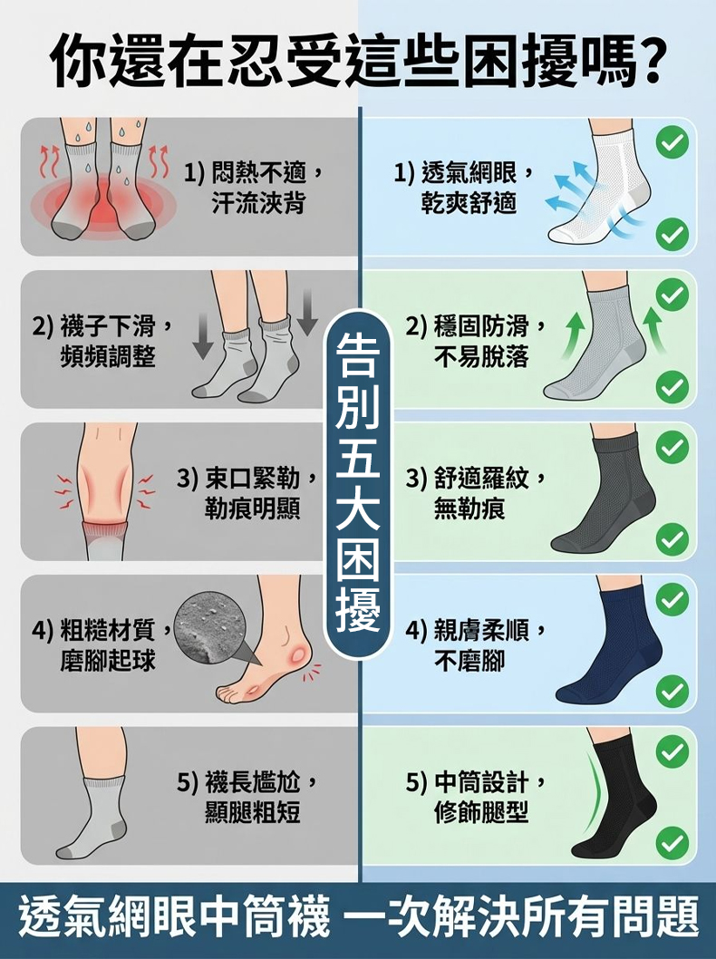 網眼透氣中筒襪
