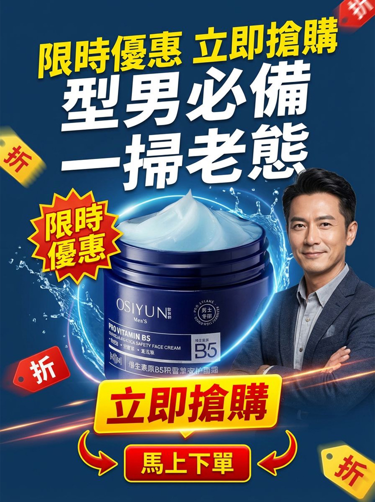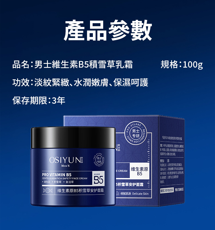 【一掃老態】男士維生素B5積雪草乳霜