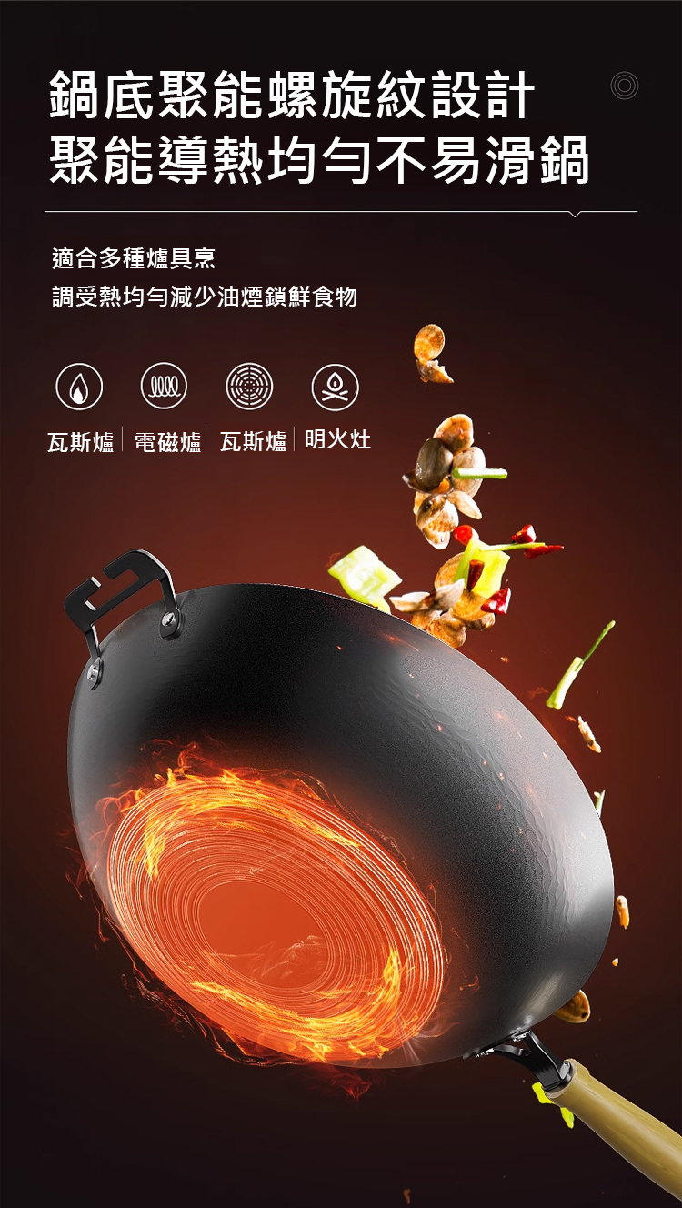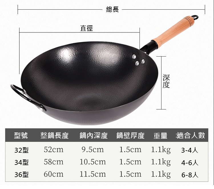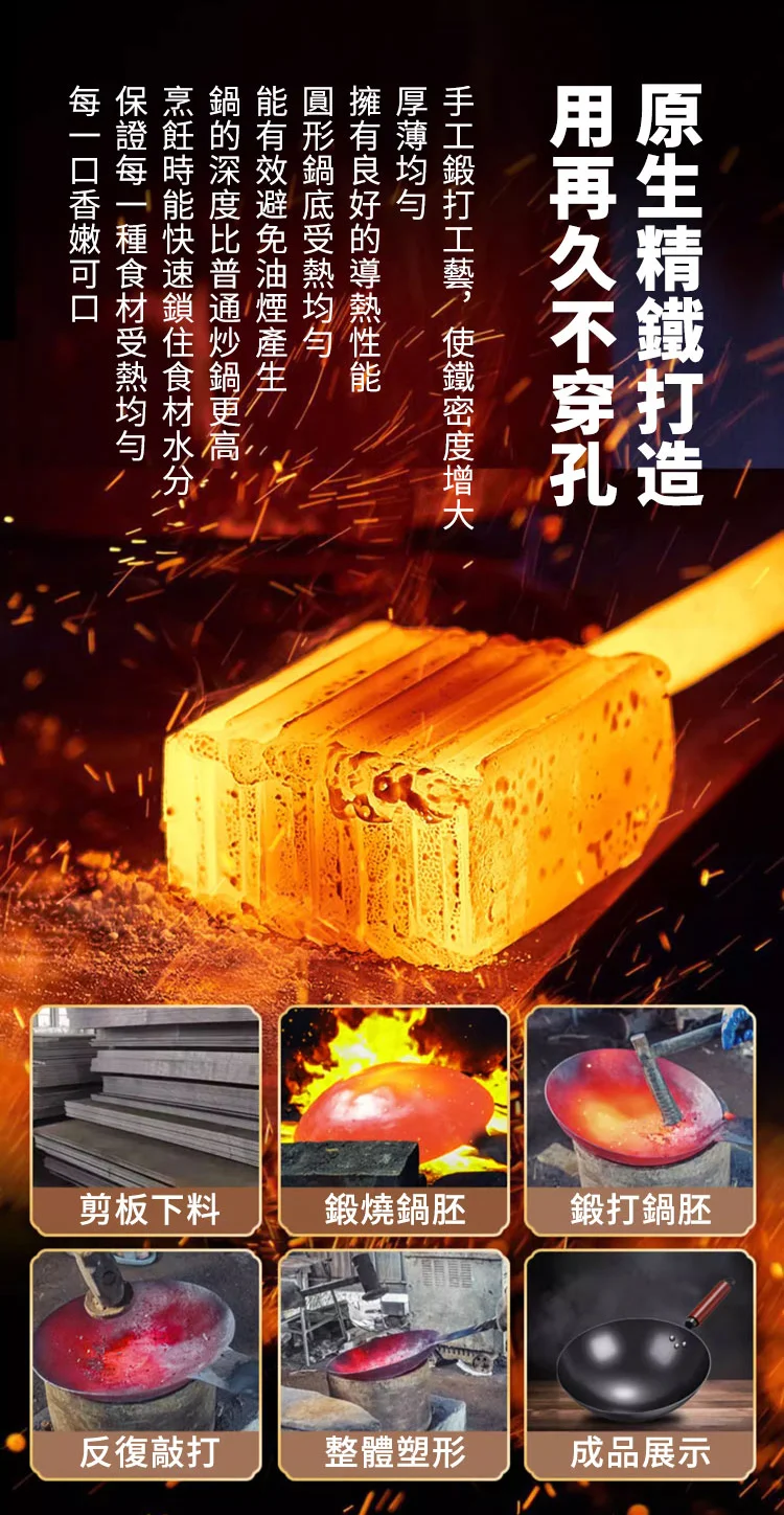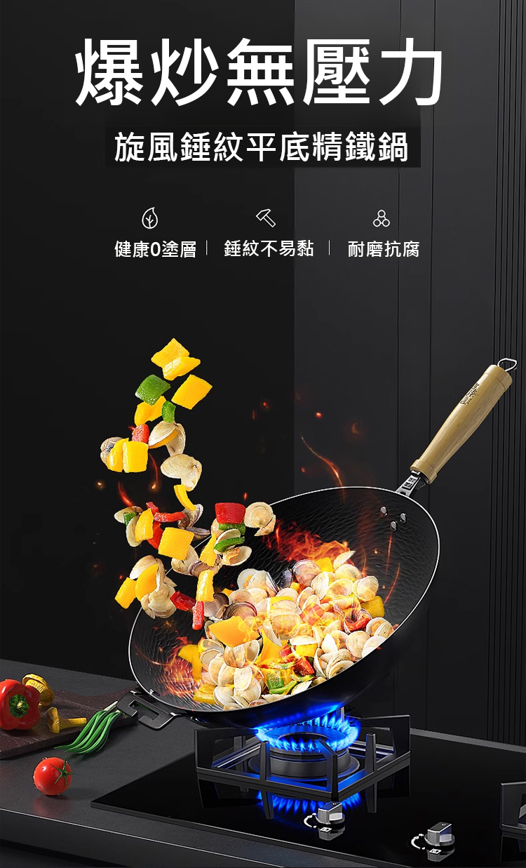 免鍋健康無塗層錘紋精鐵鍋